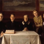 Die erhöhte, leicht gebeugte Figur der Helga macht das Gruppenportrait etwas weicher als das von Paulsen – für dieses Detail wird in der Forschung gerne Rembrandts Werk „De Staalmesters“ als Vorbild für Ancher genannt. Aber auch die Dreiteilung der Figurengruppe – Marie und Hulda, die alte Frau Brøndum mit den gefalteten Händen als (leicht verschobener) Mittelpunkt und Helga und Anna – , der gemeinsame Blick außerhalb des Bildes sowie die fast schon aristokratische Stimmung des Gemäldes und Haltung der Personen wird der Anlehnung an Rembrandt zugeschrieben.